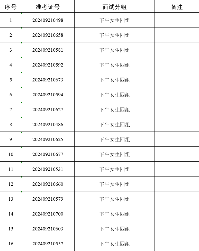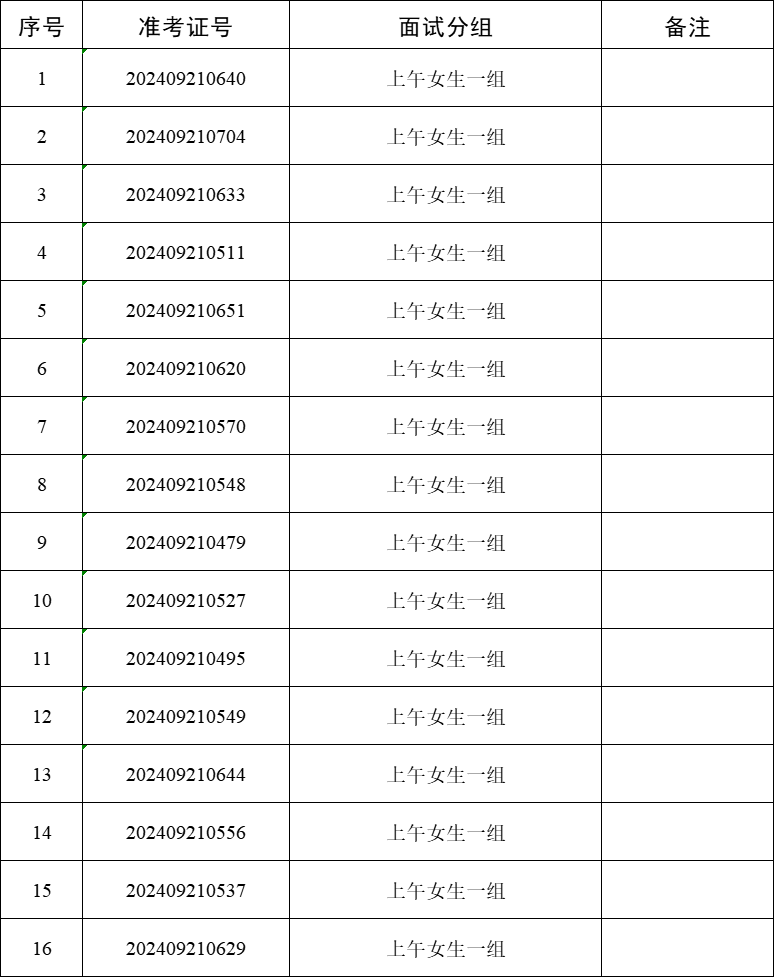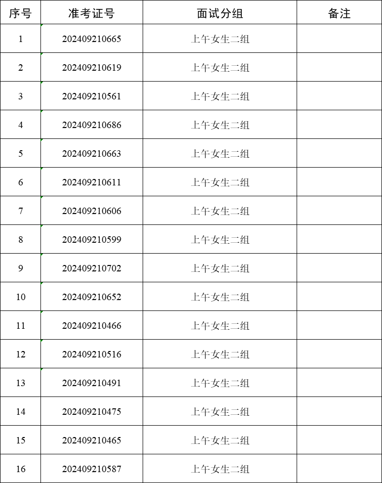 (2)每名考生面试时间不超过10分钟,按照考生所抽取的面试序号分组依次进行面试。