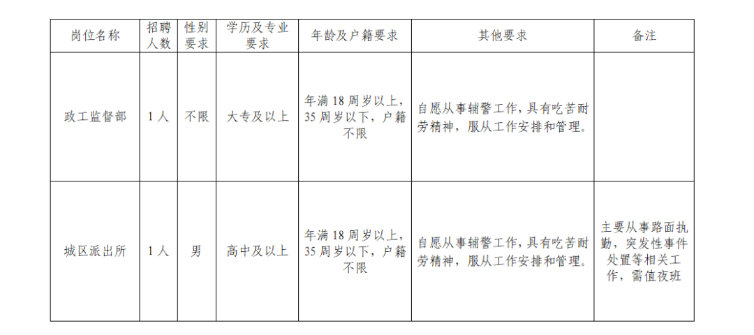 2.优先招聘政法类和公安院校毕业的未就业人员;