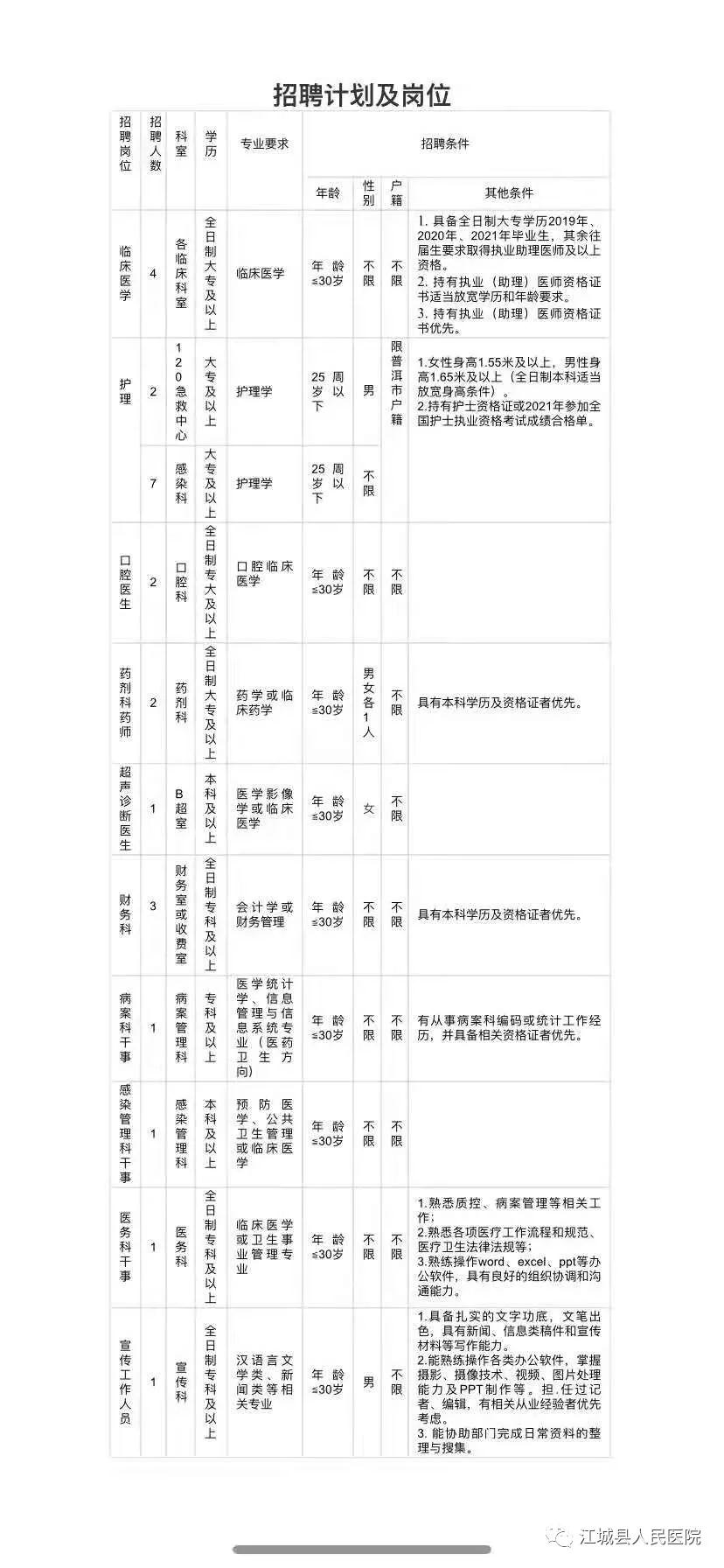 (2)江城县人民医院行政楼三楼人事科(其余招聘岗位)