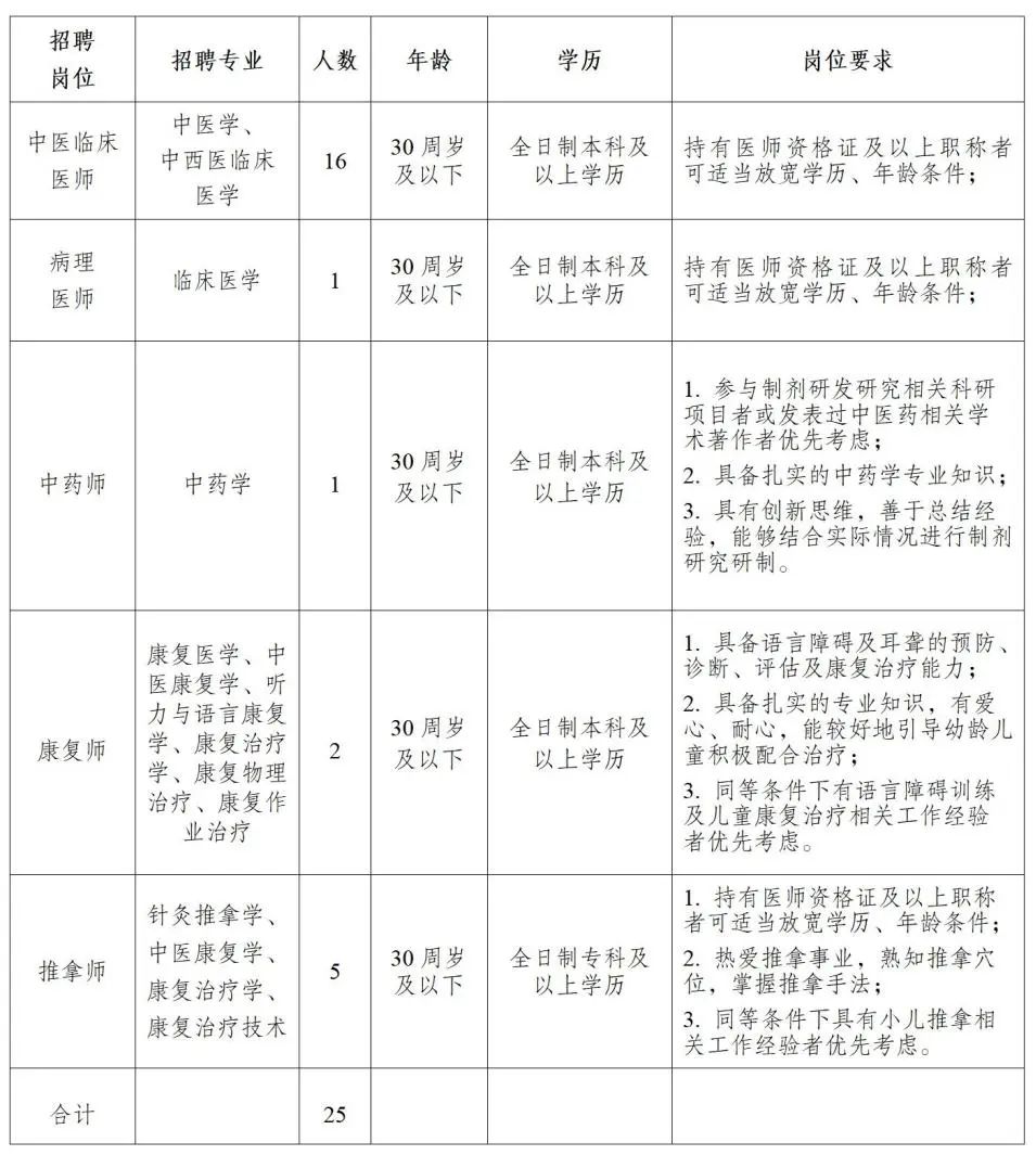 为满足紧密型医共体发展需求,切实缓解中医医院当前人员紧缺问题,推进建设优质高效中医药综合服务医院,发挥中医药特色优势,促进中西医协同发展,提升医院整体医疗服务水平。进一步加强卫生专业技术人才储备及培养,优化人力资源结构,推进高素质人才队伍建设,以满足澜沧县及周边县城人民群众的中医药医疗服务需求。面向全国招聘医药类/综合类高校毕业生及向社会公开招聘编制外合同制工作人员25名,现将有关招聘事宜公告如下:
