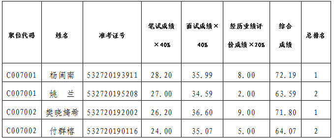 注:若考生对本人成绩有异议,可于2020年1月17日前向普洱市教育体育局提出查分申请。由普洱市教育体育局委托受邀对本次遴选工作进行监督的人大代表、政协委员进行查分,并将结果告知。