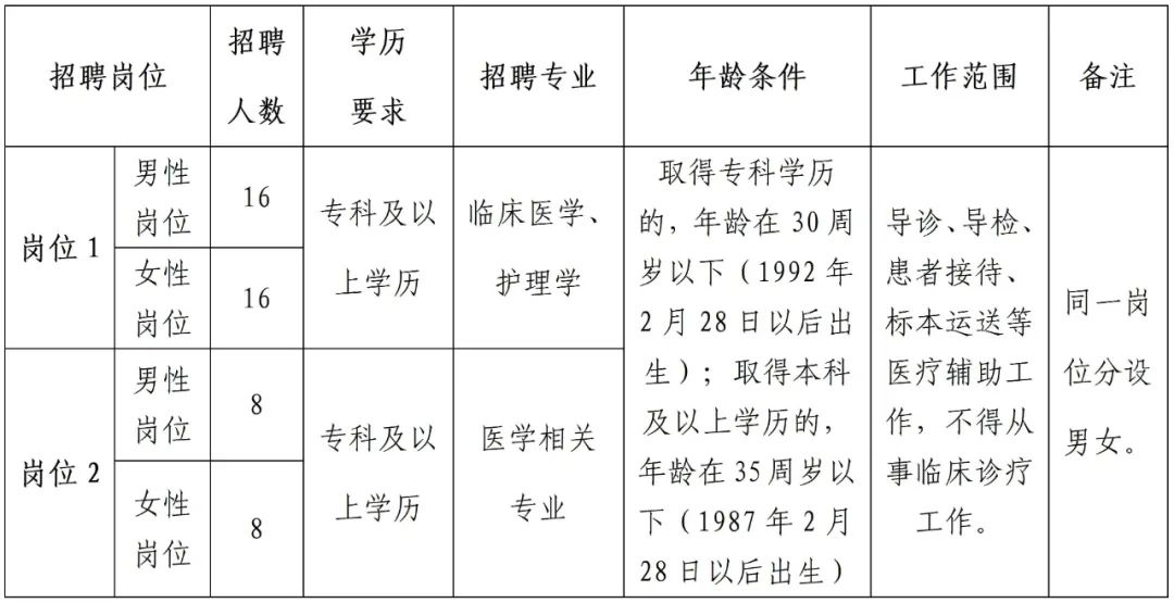 招聘医学助理48名,具体岗位设置如下: