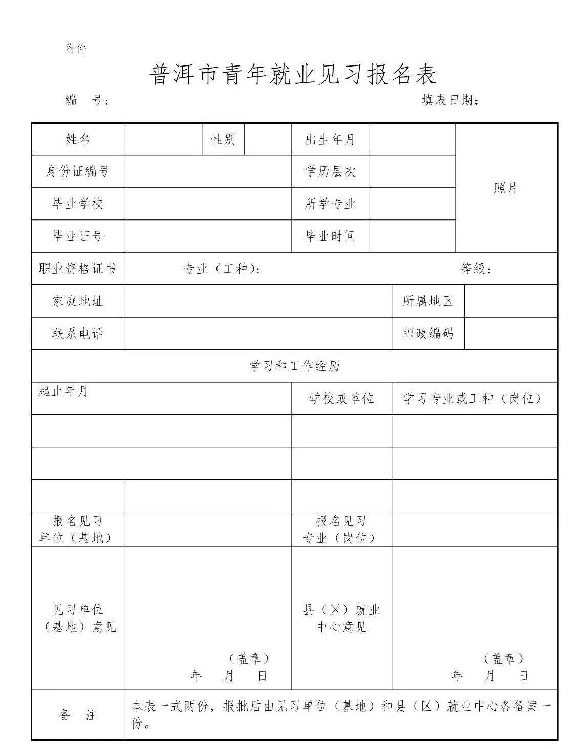 3.附件:《普洱市青年就业见习报名表》。