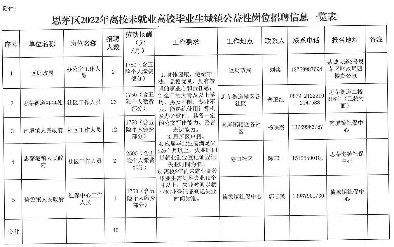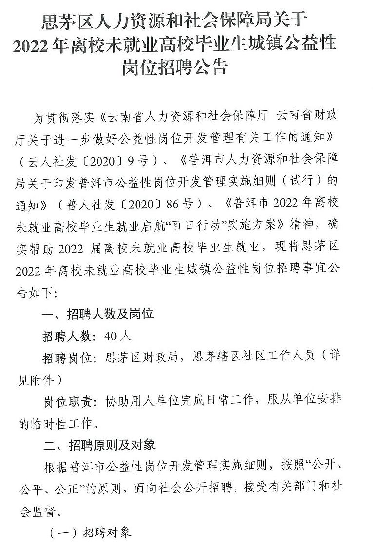 关于2022年离校未就业高校毕业生城镇公益性岗位招聘公告