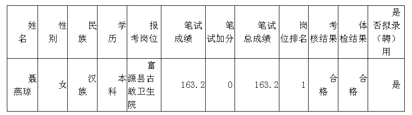 富源县2019年公开招聘事业单位工作人员延期体检人员拟录(聘)用公示