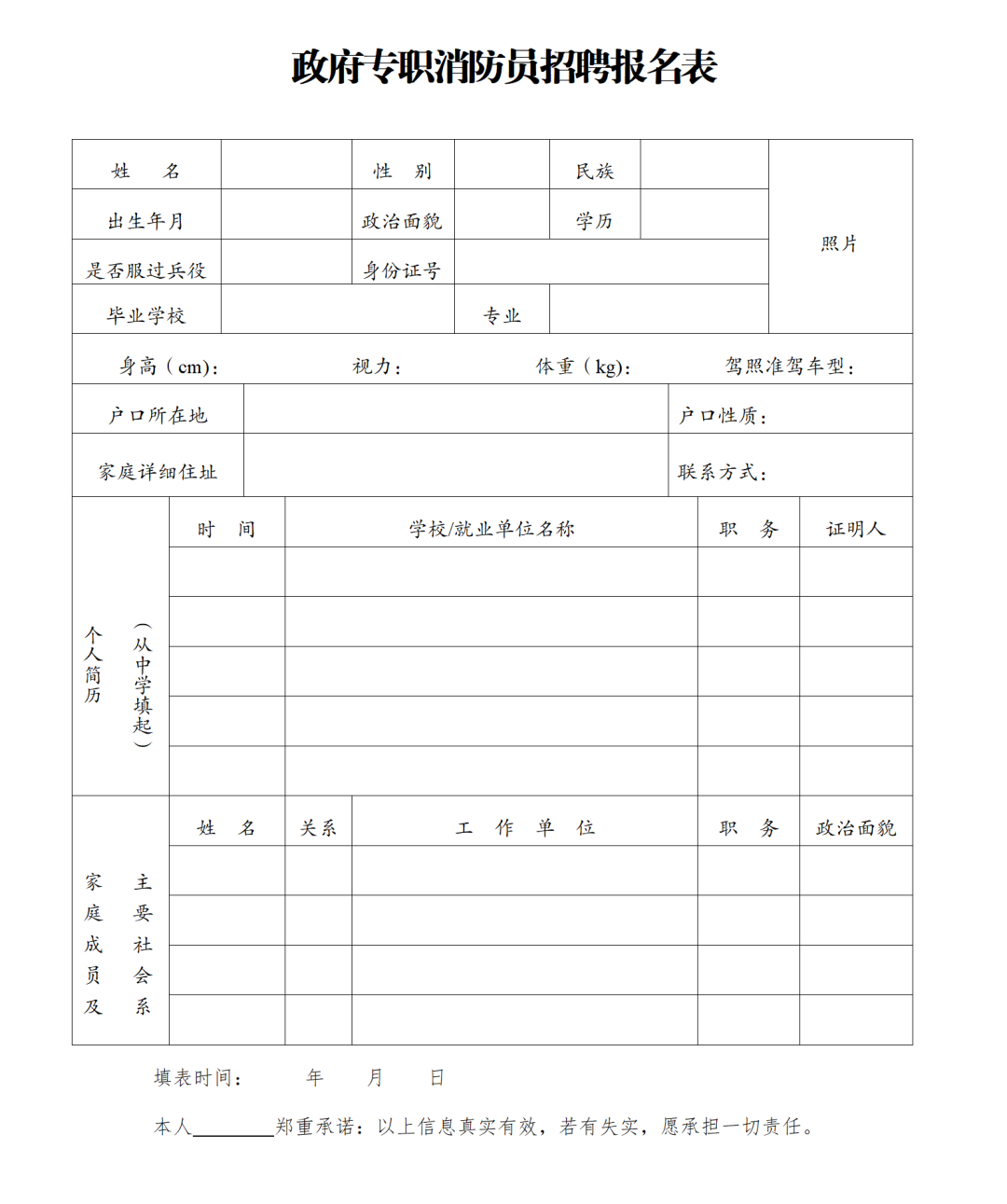 政府专职消防员招聘报名表
