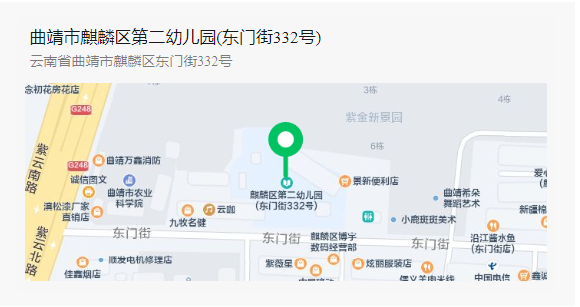 曲靖市麒麟区第二幼儿园位于曲靖市麒麟区南宁南路东门街332号,始建于1992年。幼儿园于2011年、2018年先后被云南省教育厅认定为“云南省一级一等示范幼儿园”“云南省现代教育示范幼儿园”是曲靖市唯一一家入选质量强市的学校。幼儿园现有本部、金湘两个园区,本园占地面积6469平方米,分园占地面积1737平方米,两园区共有27个教学班,1200余名幼儿,130余名教职员工。