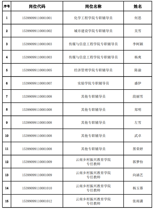拟聘人员公示表