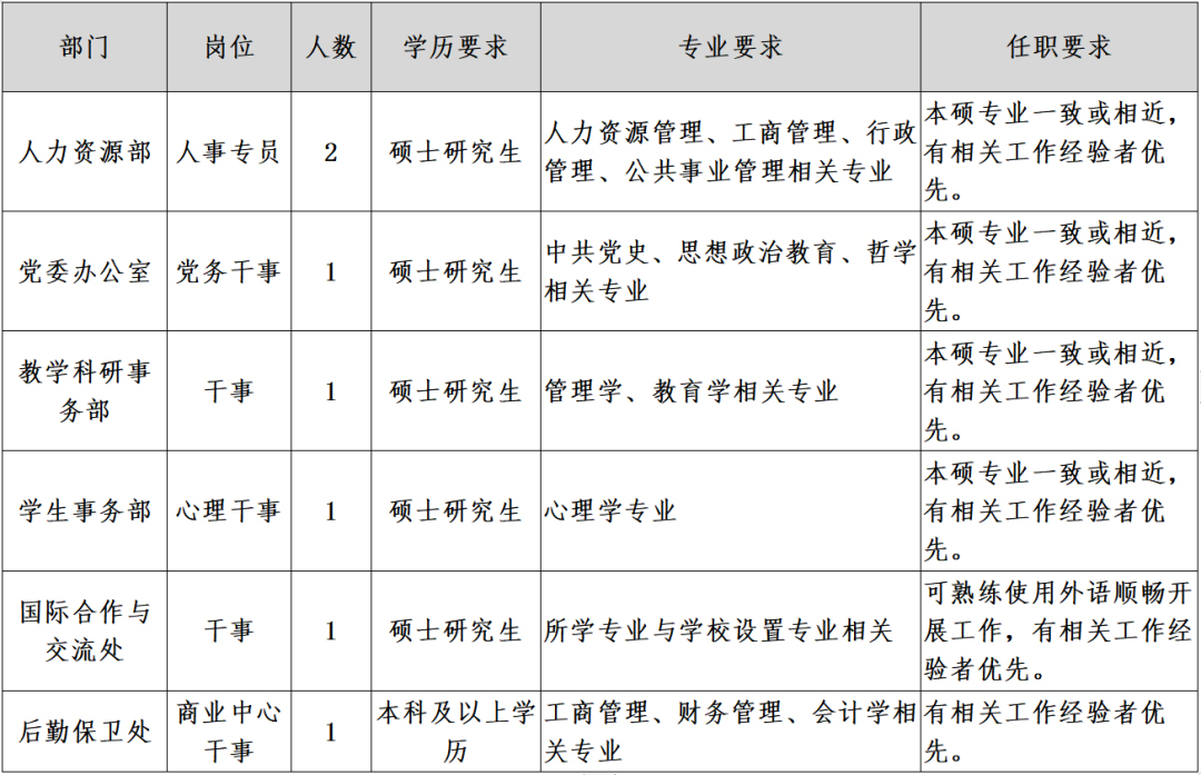 我校2021年3月招聘公告