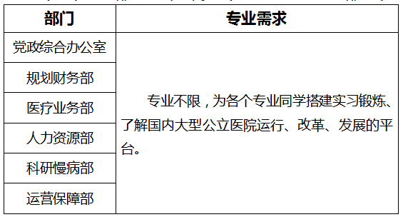 (一)实习部门和专业需求(每人可申报2个部门)