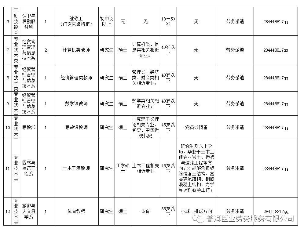 (五)报考专职教师岗位要求全日制研究生学历及硕士以上学位(具体要求详见附表);报考管理岗位要求全日制本科学历及学士以上学位(部分岗位限专业,具体要求详见附表)。报专业技术岗位思教部者,党员或预备党员优先。