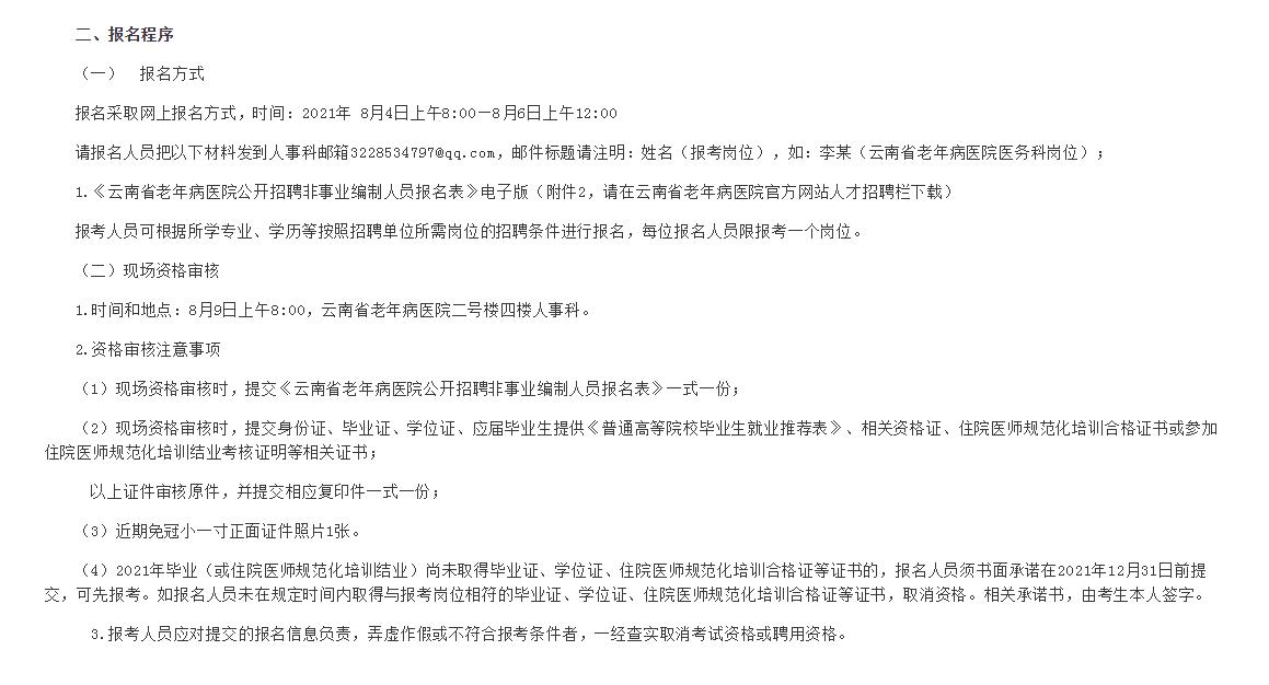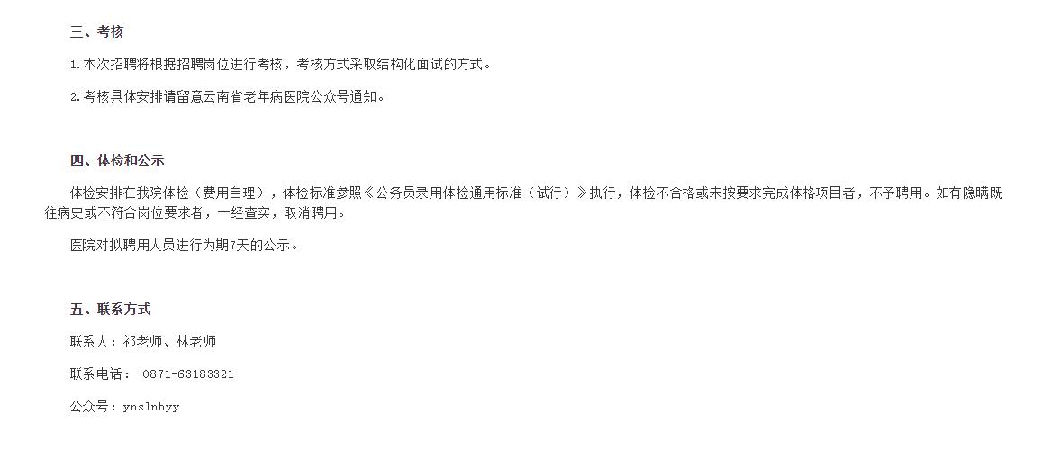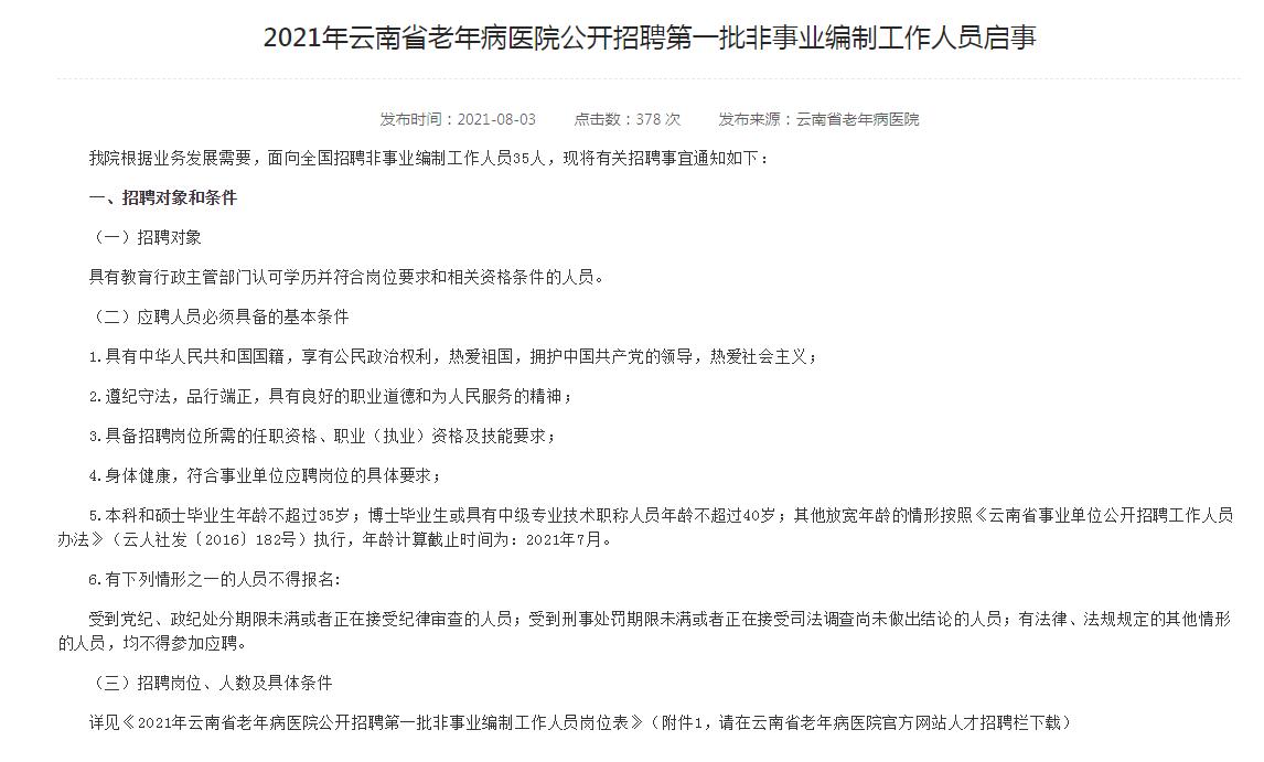 2021年云南省老年病医院公开招聘第一批非事业编制工作人员启事