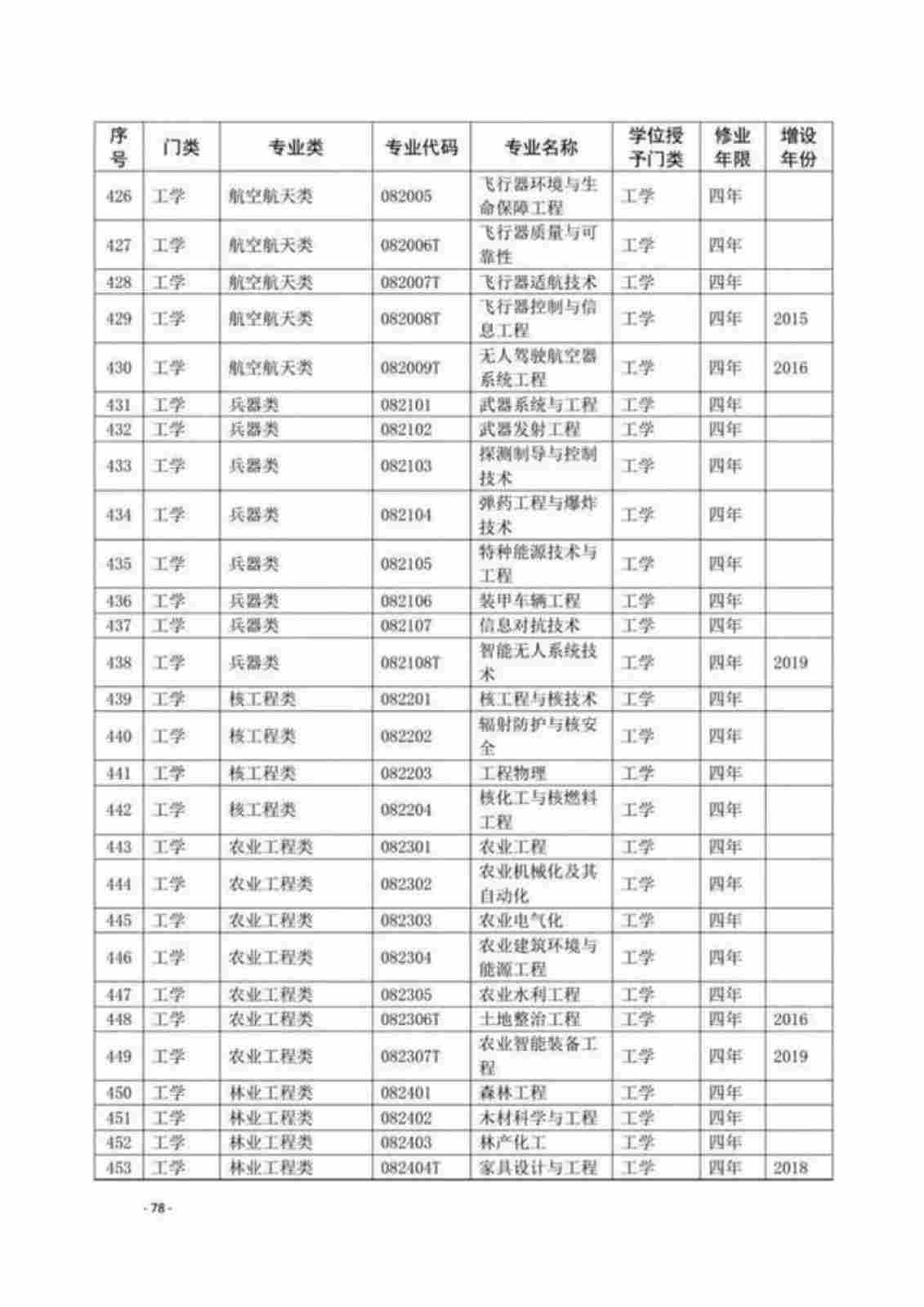 | 序号 | 专业代码 | 专业名称 | |||
