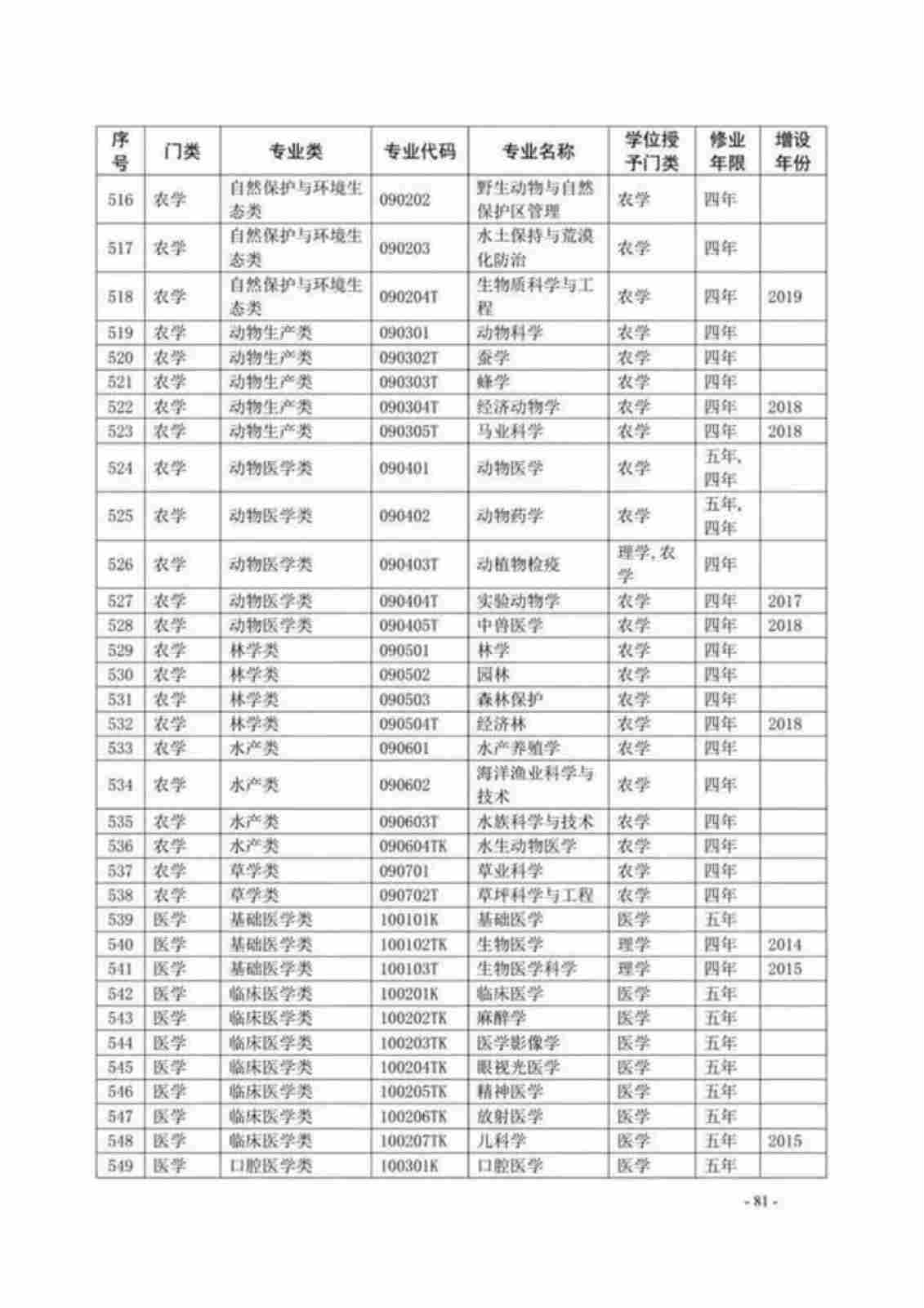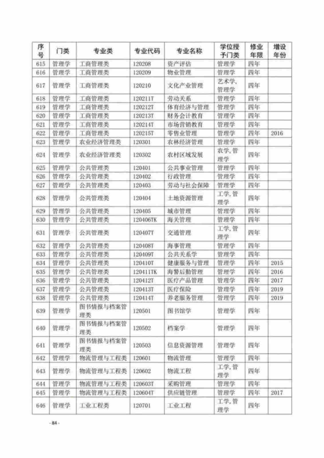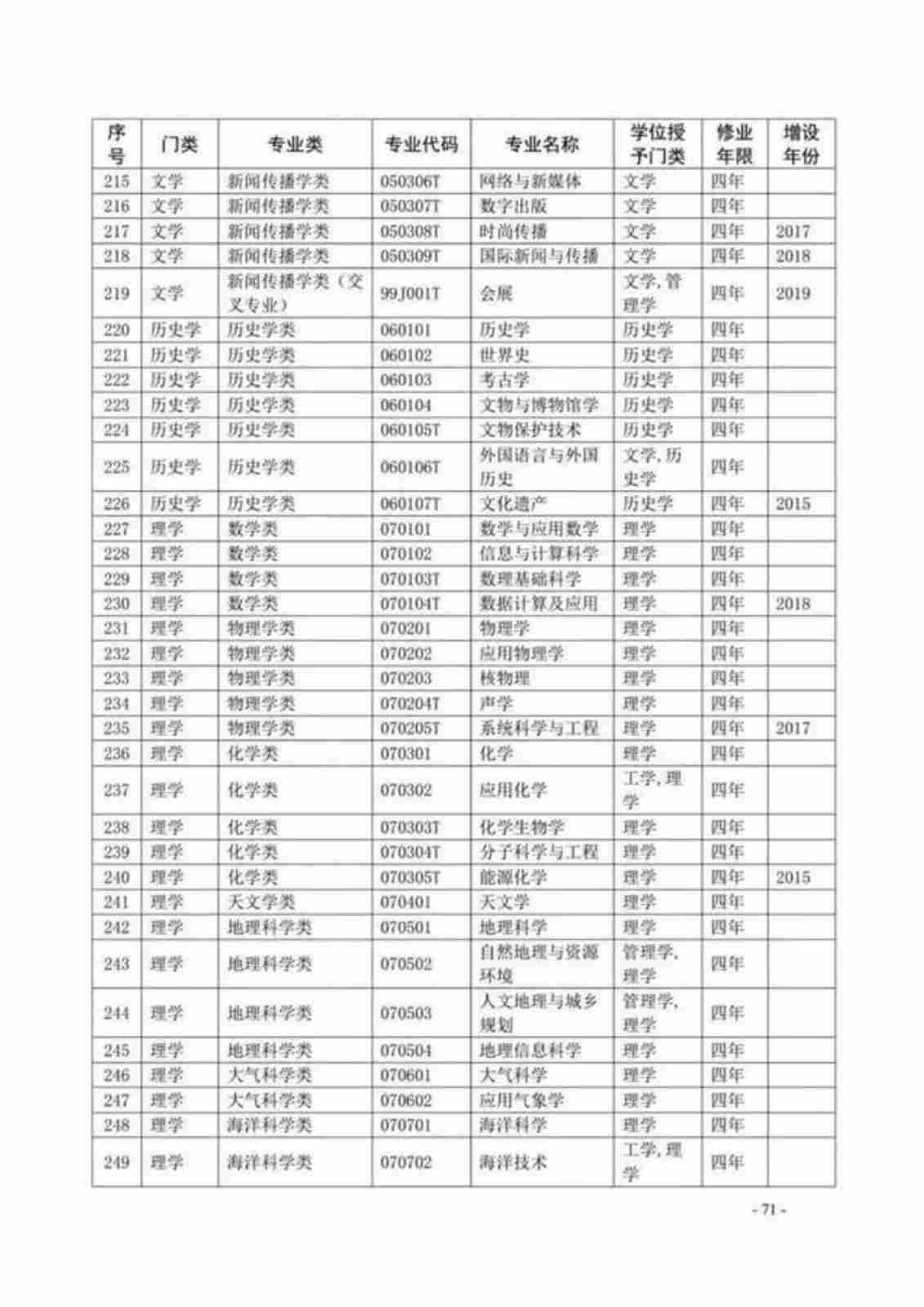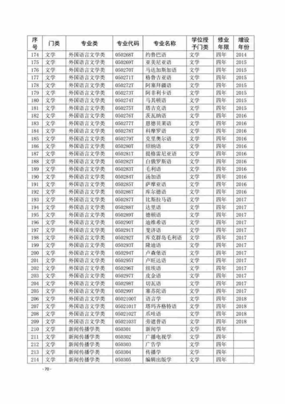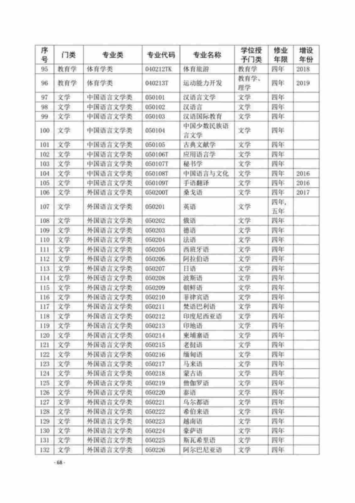| 序号 | 专业代码 | 专业名称 |