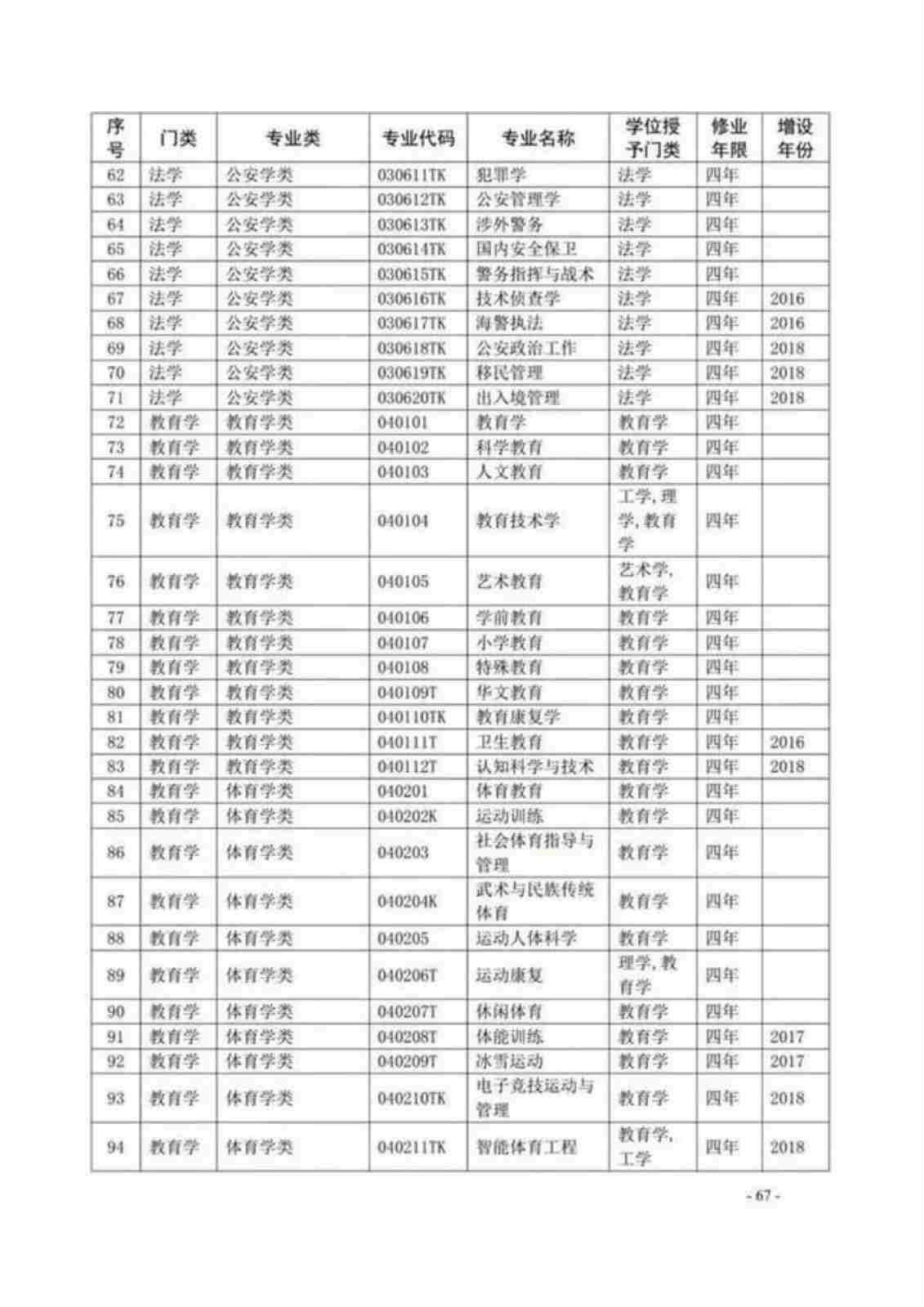 | 673 | 6701教育类 | 670118K | 特殊教育 |