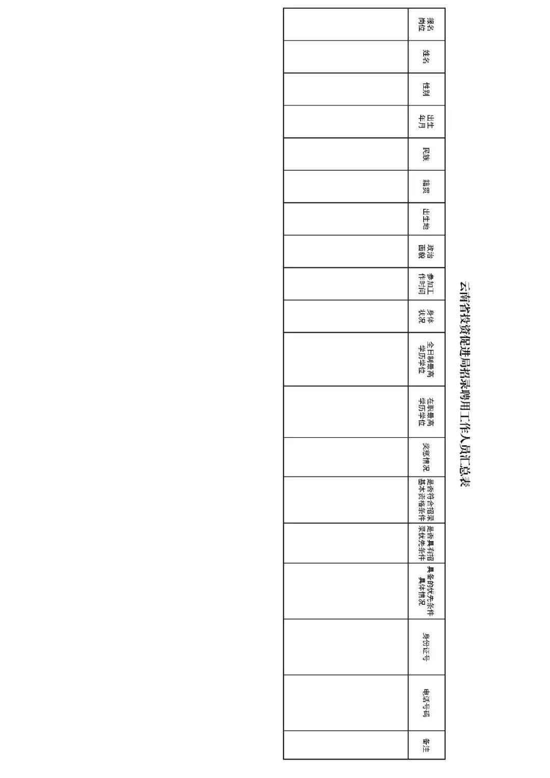 3.资格审查及条件比选。由招录工作组对报名人员的基本资格条件进行审核;对基本资格审核通过的人员,由招录工作组对照优先条件进行比选,确定5名左右的人员进入面试考察,面试考察人员名单在云南投资促进网进行。