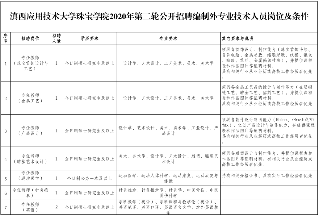 1.滇西应用技术大学珠宝学院2020年第二轮公开招聘专任教师岗位及条件.pdf