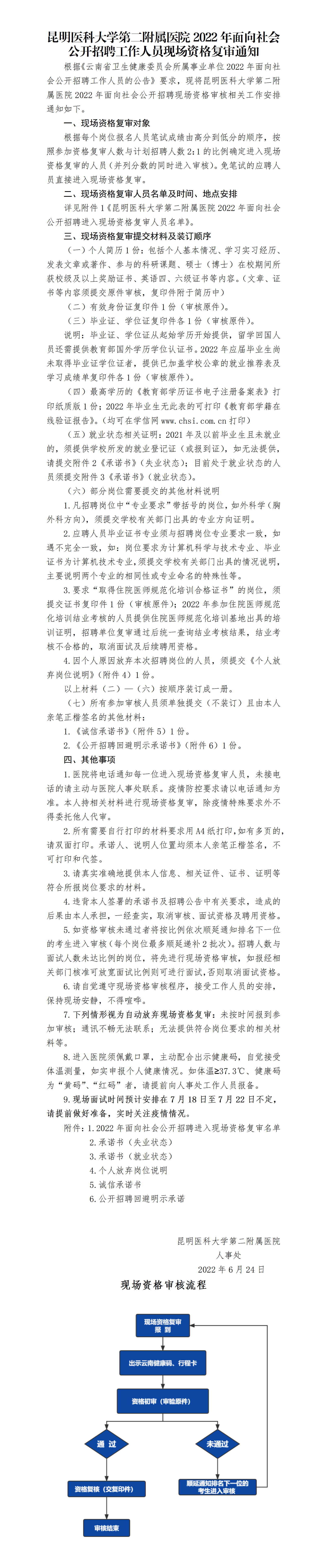 2022年面向社会公开招聘工作人员现场资格复审通知