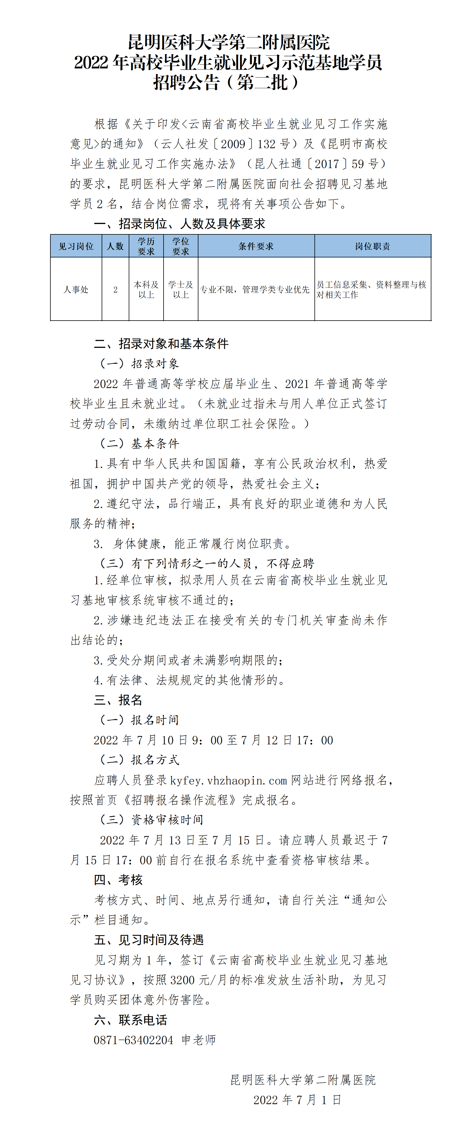 2022年高校毕业生就业见习示范基地学员招聘公告(第二批)