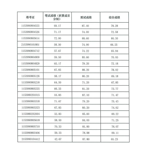 一、面试人员成绩(按准考证号排序)