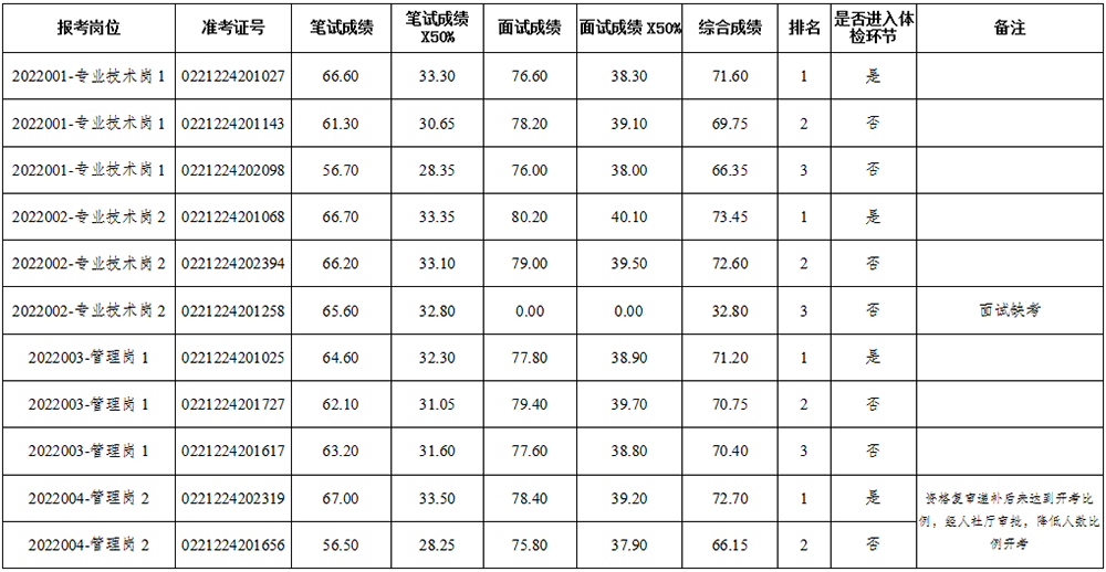 2022年公开招聘面试成绩、综合成绩及岗位排名公告