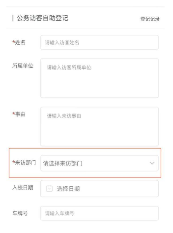 注:进入到自助登记页面后,“来访部门”须选择报考岗位所属的学院或部门。