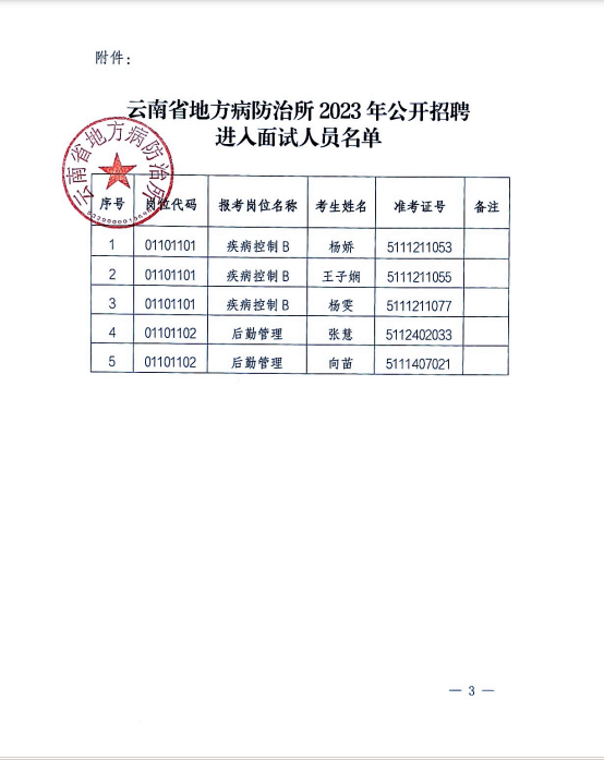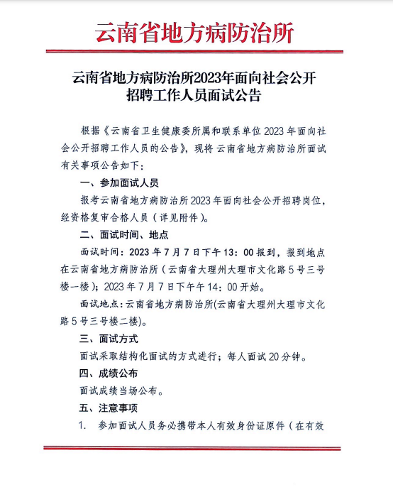 云南省地方病防治所2023年面向社会公开招聘工作人员面试公告