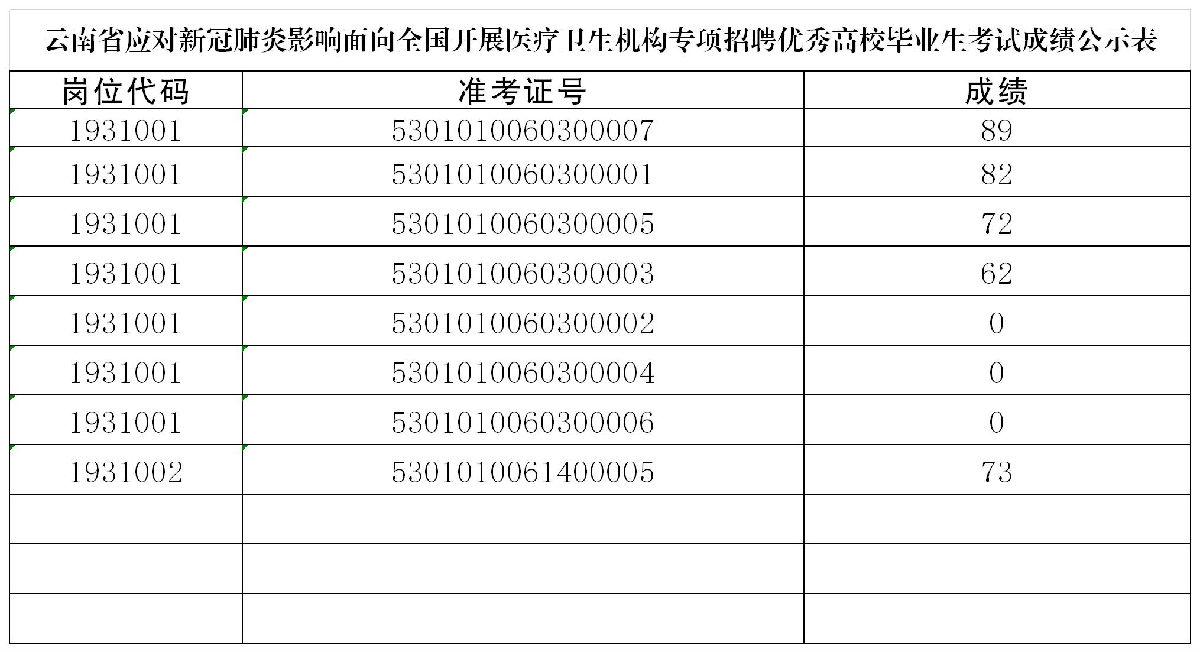 机构专项招聘优秀高校毕业生考试成绩公示表