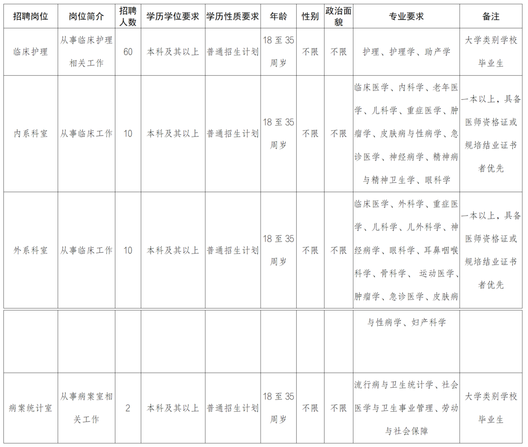2.拥护党的方针、政策,热爱祖国,医德医风高尚,有吃苦耐劳和奉献精神,服从工作安排及科间调配,思想进步,作风扎实,具有较强的责任心和事业感;
