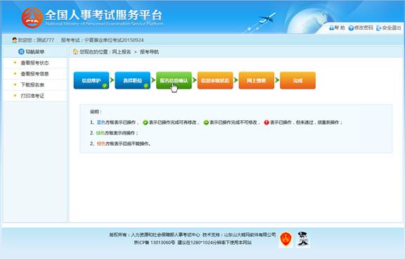 通过点击“确认”按钮,提示确认成功后跳转到报考流程页面,如下图所示: