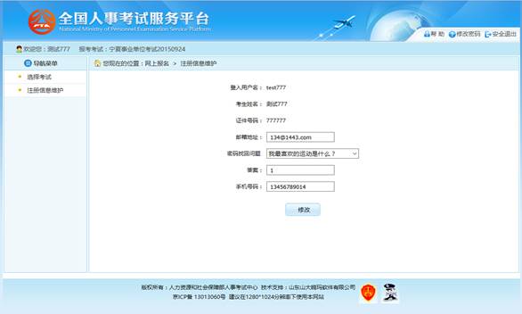 通过点击系统导航菜单中“注册信息维护”选项,可跳转到修改注册信息页面,