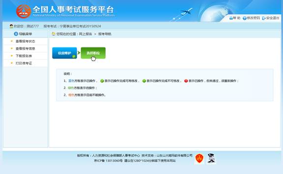 选择相应的职位,点击“保存”按钮,提示保存成功,可以跳转到报考流程页面,