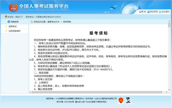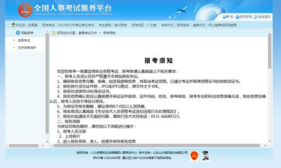 考生登录系统后,上传照片完成后进入报考须知阅读页面,如下图所示:
