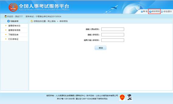 通过点击系统右上角的“修改密码”选项,可跳转到修改密码页面,如下图所示: