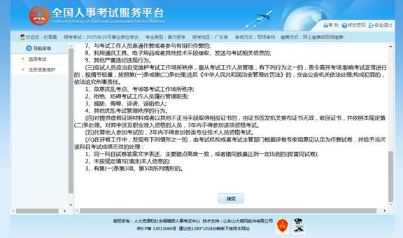 通过点击“接受”按钮,进入查看考生承诺书的页面,如下图所示: