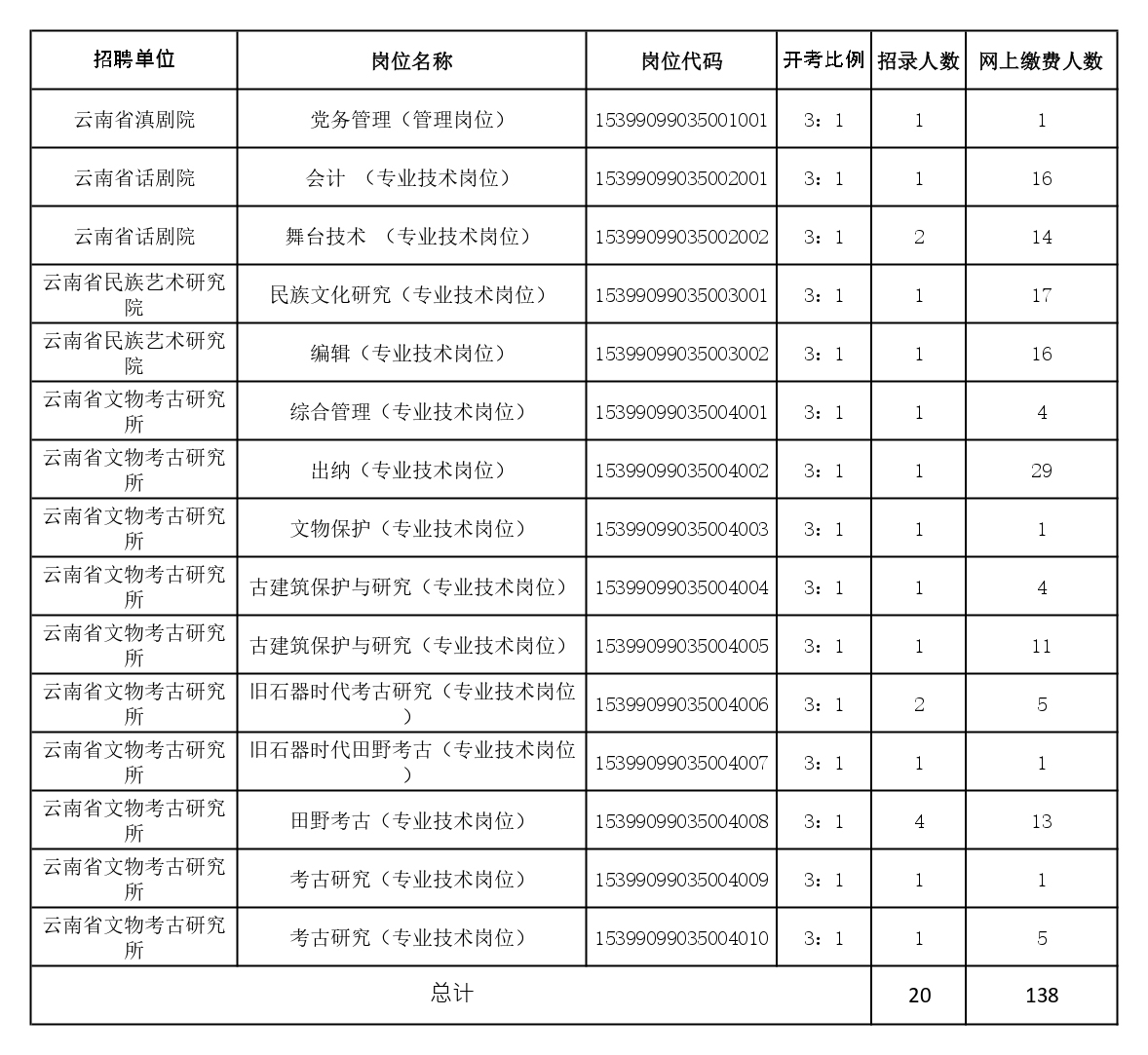直属事业单位公开招聘人员报名缴费情况