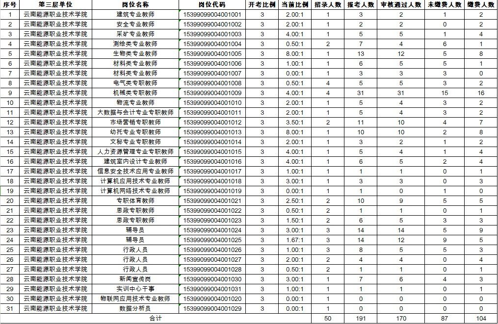 2024年云南能源职业技术学院公开招聘人员报名情况统计