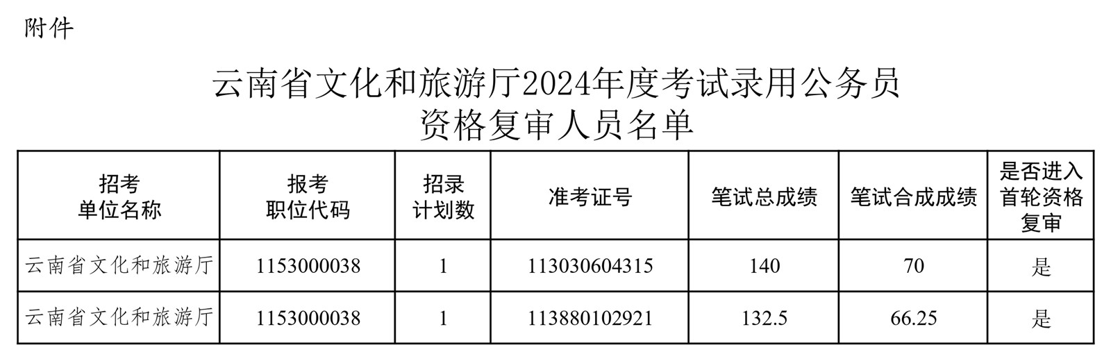 附件:云南省文化和旅游厅2024年度考试录用公务员资格复审人员名单