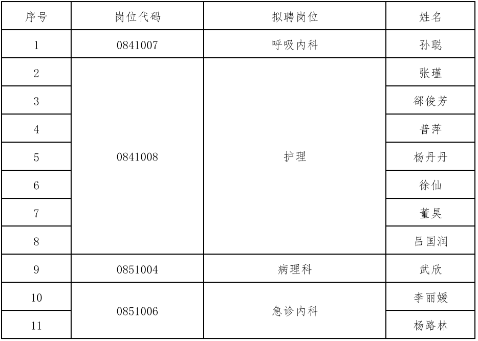 面向新冠肺炎疫情防控一线医务人员定向招聘拟聘用人员公示