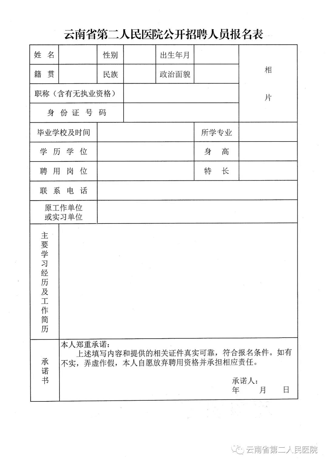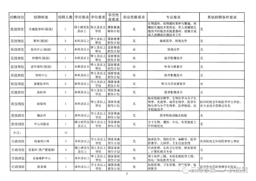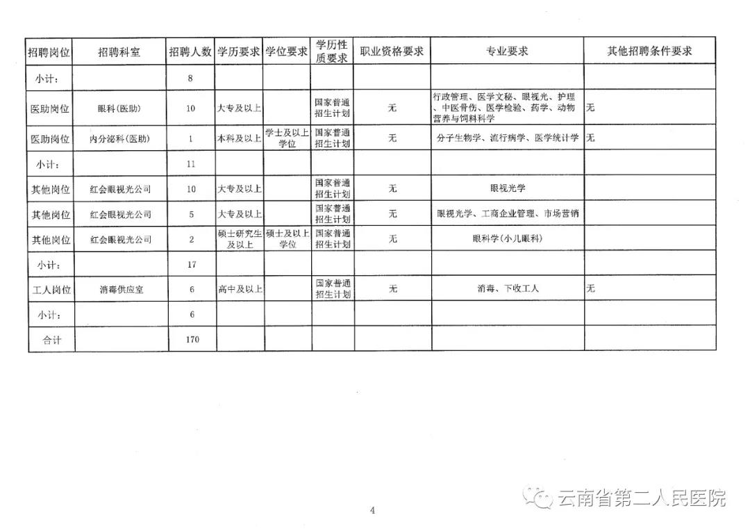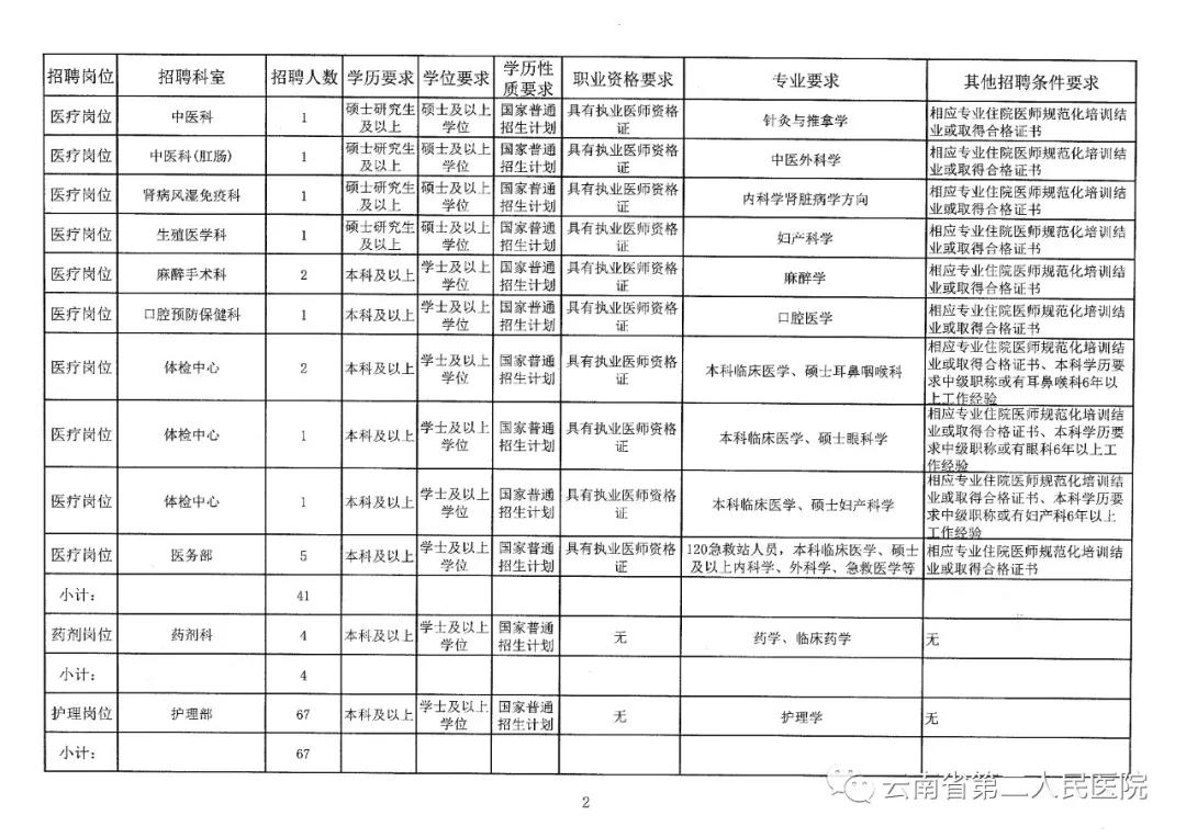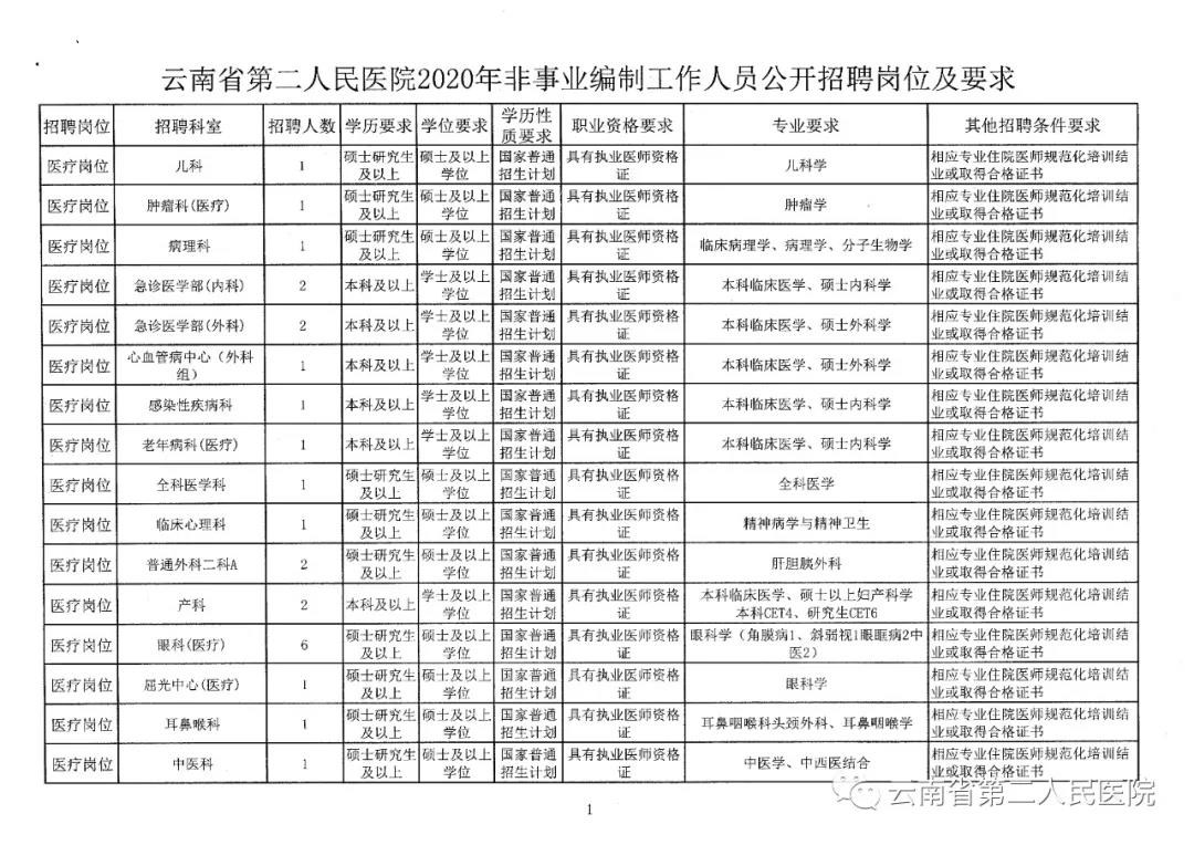 (一)云南省第二人民医院2020年非事业编制工作人员公开招聘岗位及要求