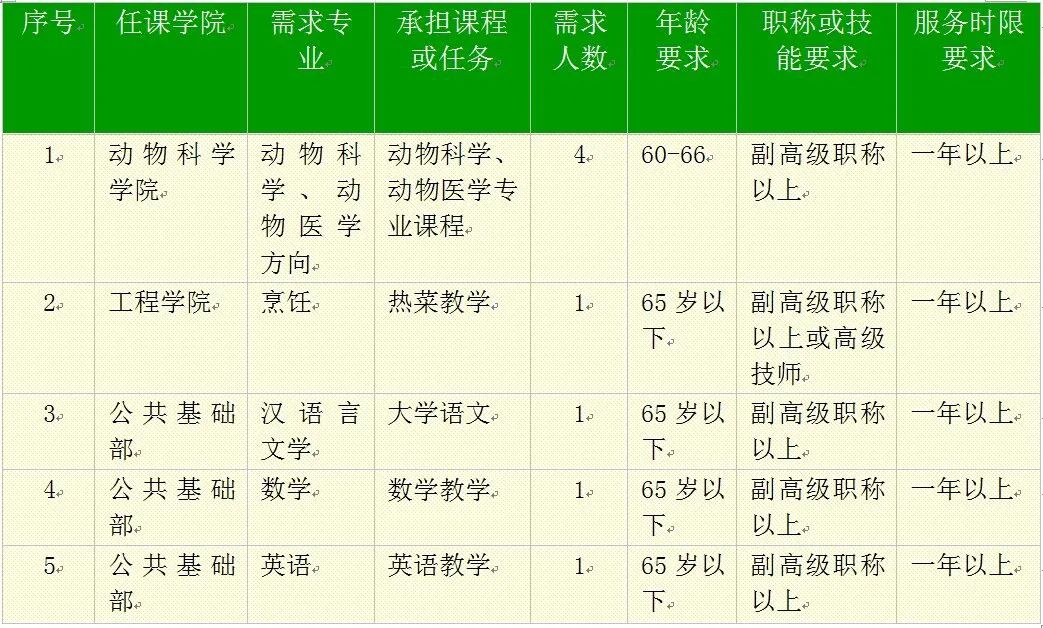 大理农林职业技术学院招募2025年春季职业教育“银龄教师”8名。具体招募岗位及招募资格条件如下: