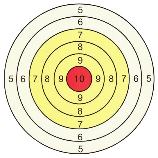 红点靶1环计2分,满环计100分,压线算内环,有效区域以外计0分,命中靶标有效区域分扣除罚环分为本项目成绩。