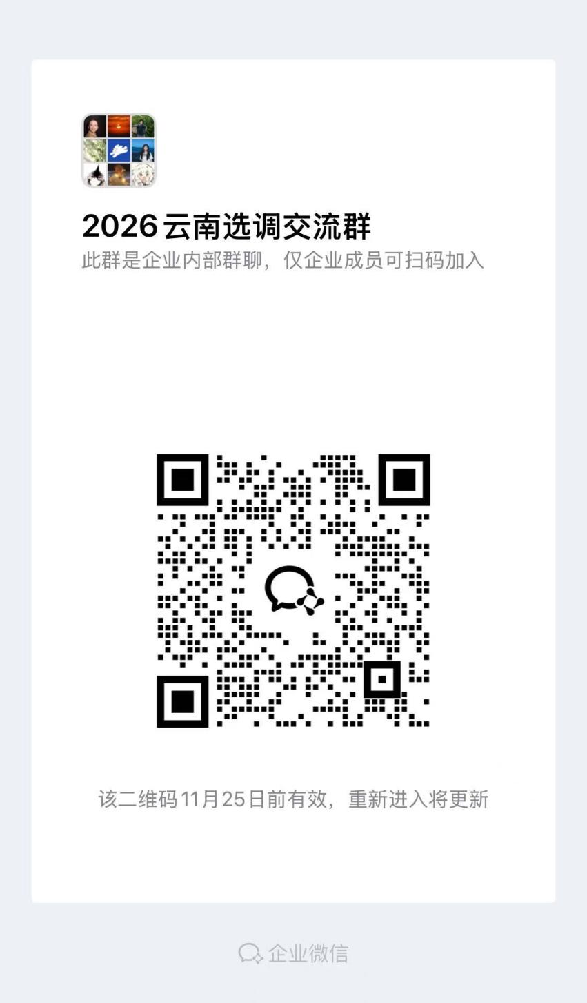 步骤1:扫描本公告的二维码,进入“2026云南选调交流群”。(如二维码失效,请添加工作人员微信:sxy18721301383,并备注“姓名-院系-云南选调”)