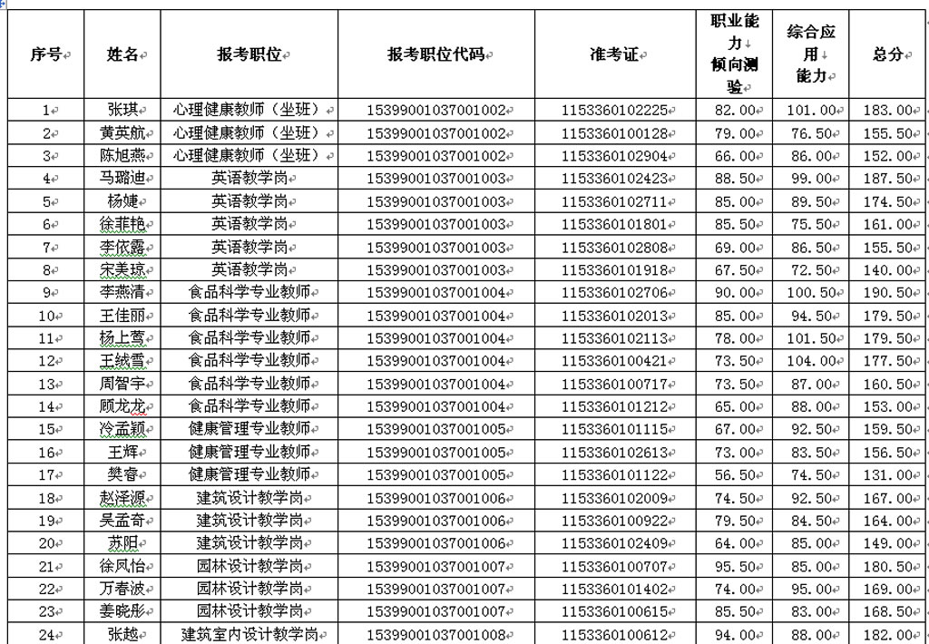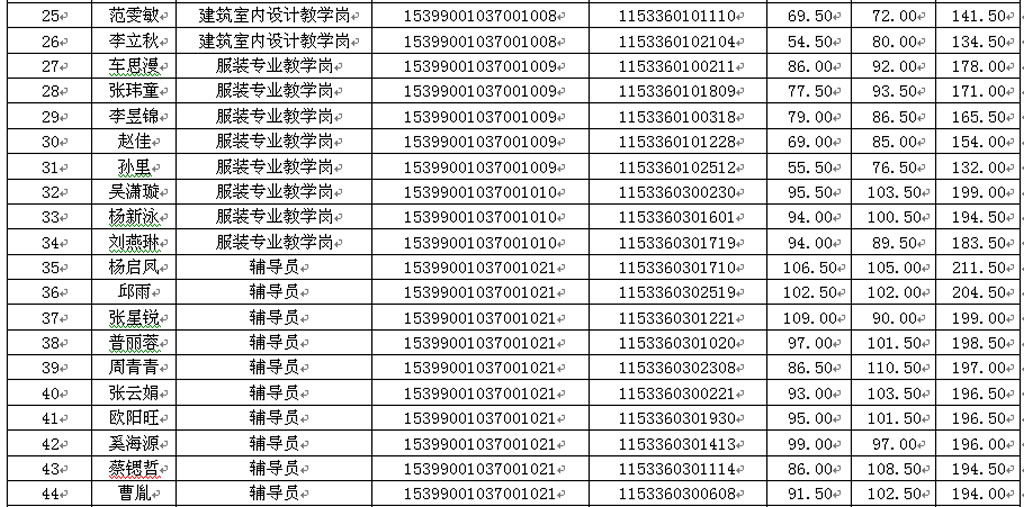 附:云南轻纺职业学院2020年第二批公开招聘事业单位工作人员笔试成绩及进入资格复审人员名单