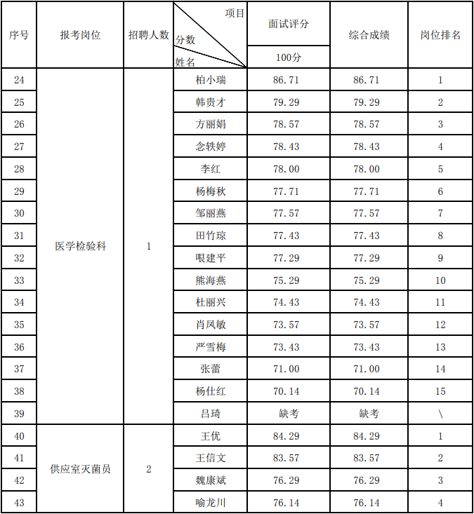 云南省第三人民医院2020年公开招聘非事业编制工作人员医技岗位综合成绩