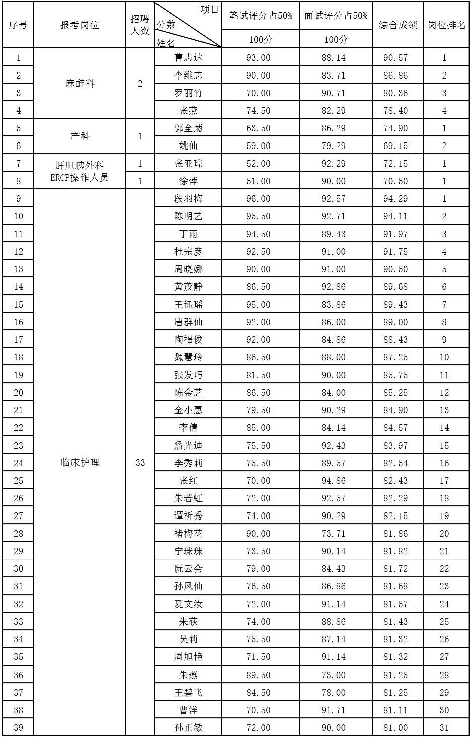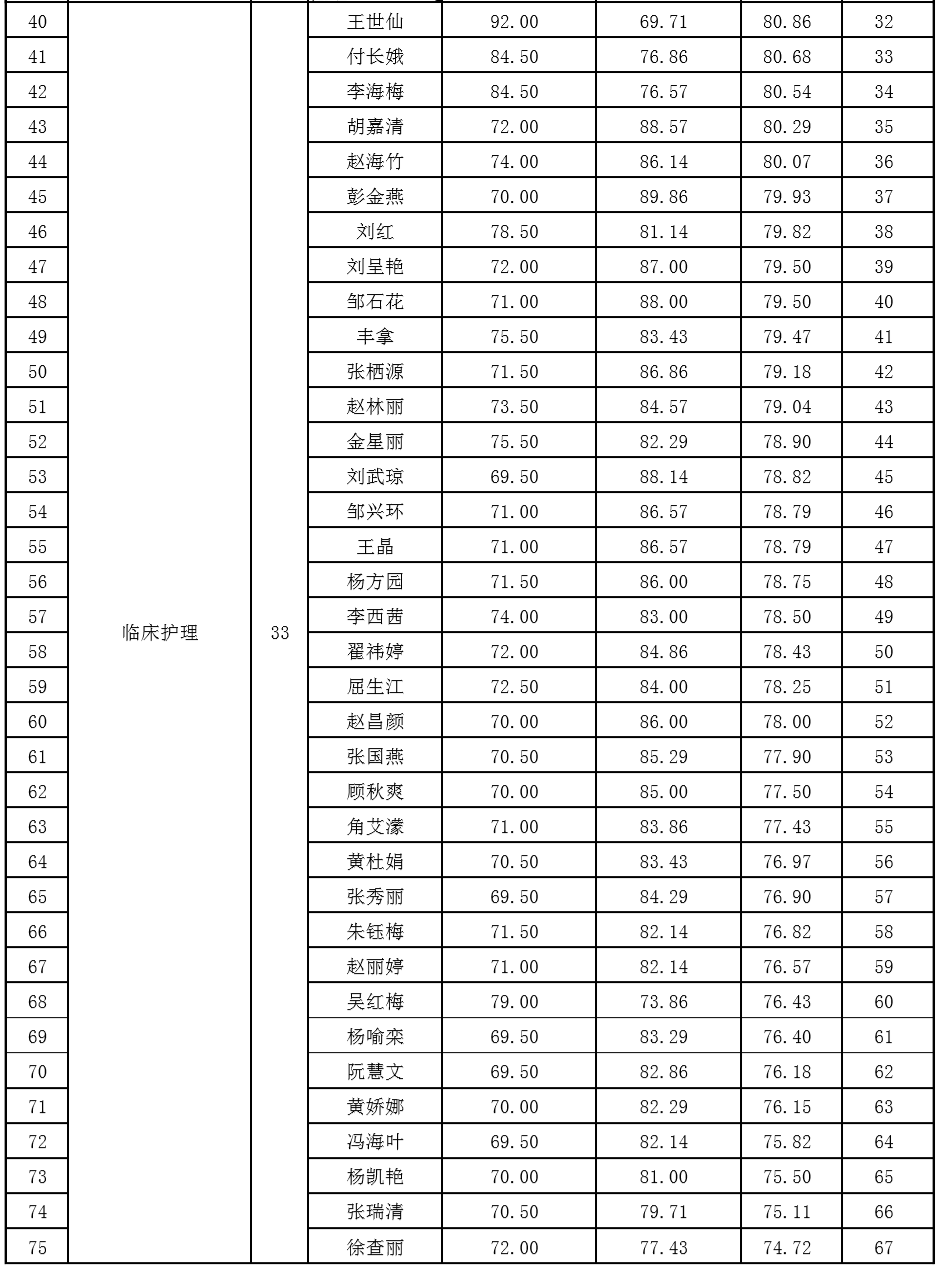 云南省第三人民医院2020年公开招聘非事业编制工作人员护理岗位综合成绩