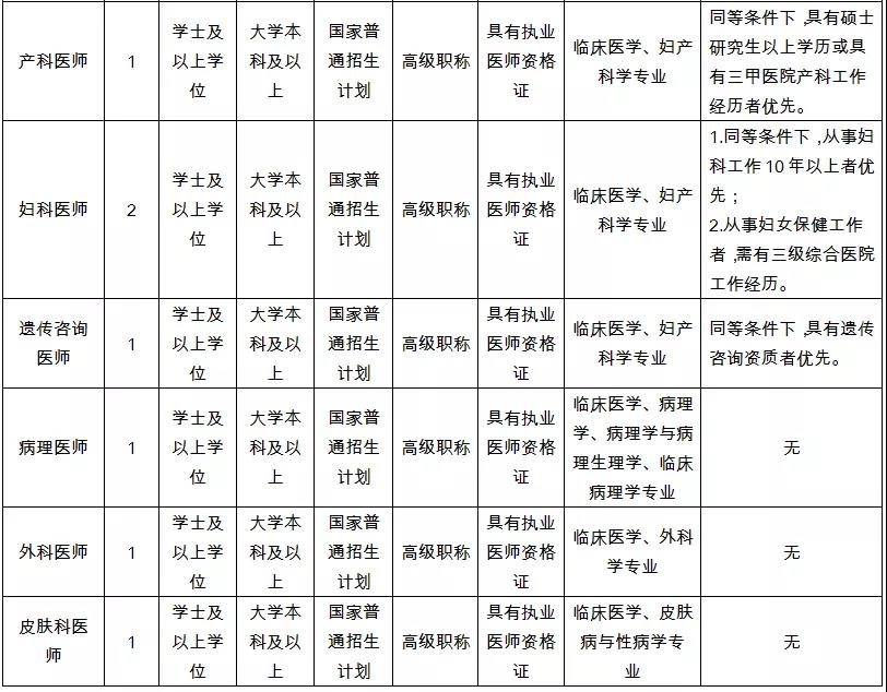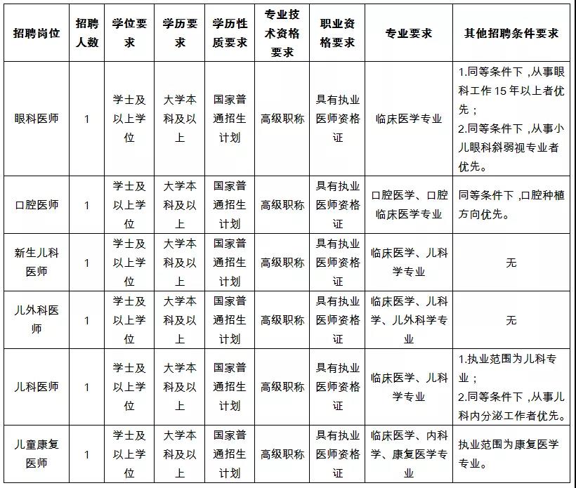1.副高及以上职称(新生儿科医师、儿外科医师、儿科医师、儿童康复医师、产科医师、妇科医师、病理医师、外科医师、皮肤科医师)