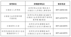 2020年云南省总工会直属事业单位招聘资格复审时间2020年12月7日(星期一)上午9:00-12:00,下午14:30-17:30。