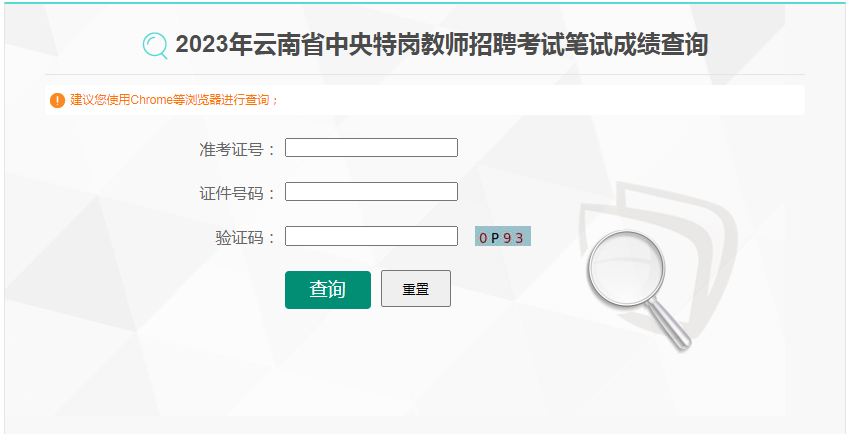 2023年云南省特岗教师招聘笔试成绩查询入口:点击查询