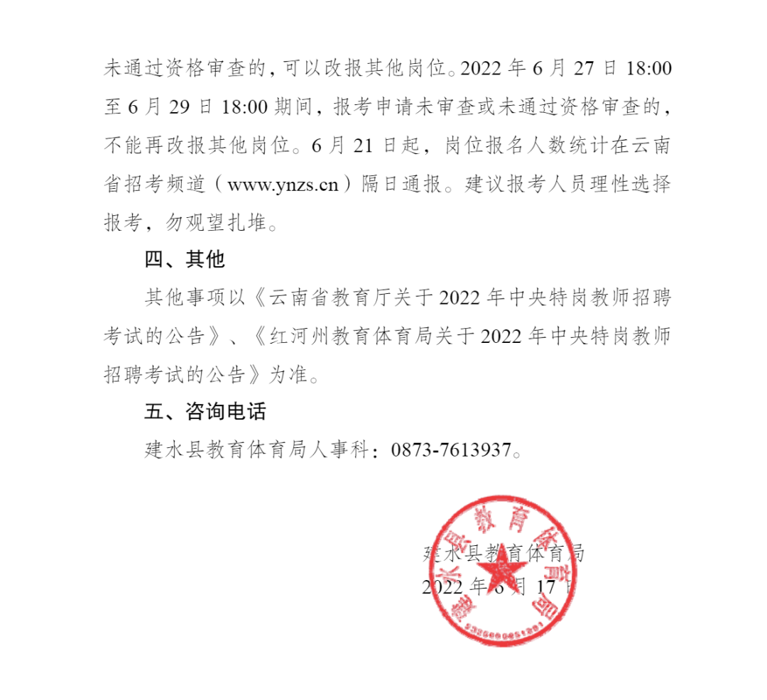 建水县教育体育局关于2022年中央特岗教师招聘考试报名的温馨提示